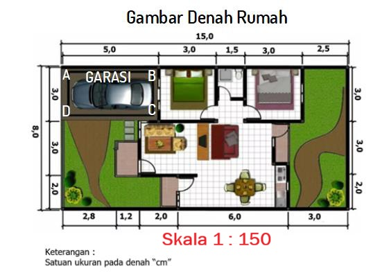 - Luas garasi ABCD sebenarnya 31,5 m2.